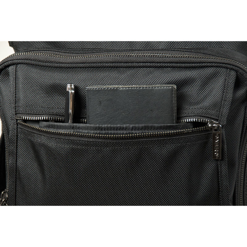 Designed as a multifunctional organization hub, this function backpack can also serve as a portable storage toolbox. The front compartment includes pen holders, a business card slot, slip pockets, and a small zippered pocket for quick-access essentials. The middle section features a three-layer expandable divider system combined with the space-enhancing stitching method, maximizing internal layout efficiency. Files, organizers, stationery boxes, and document cases can all be systematically arranged and carried with ease—making it an ideal laptop man bag for business professionals.