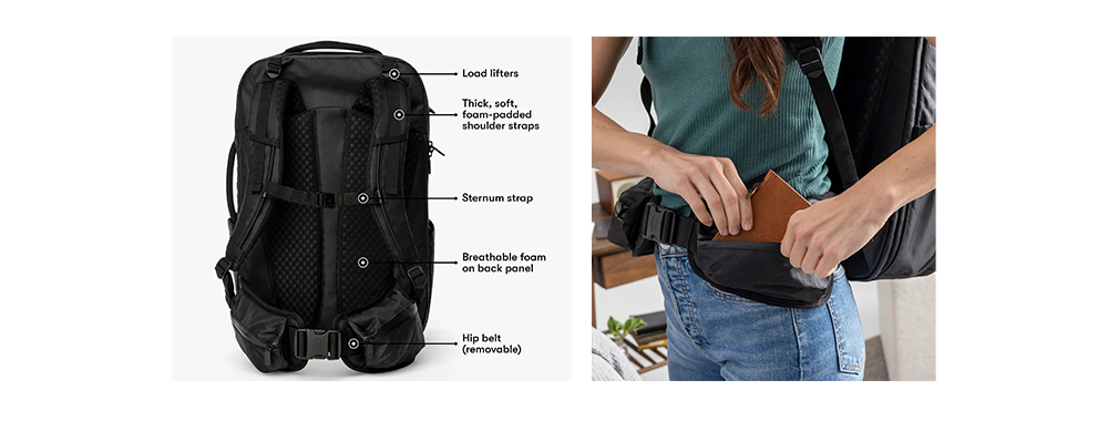 • Travel-Specific Design: Adjustable chest strap and hip belt system, providing strong support for extended use.