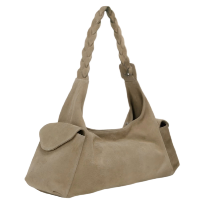 This khaki dumpling bag is the perfect blend of functionality and style. Designed with unique buckle pockets on each side, it offers both practicality and flair. Ideal for those who need easy access to essentials, this handbag adds a touch of sophistication to everyday looks.