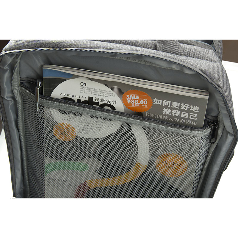 The second main compartment, located closest to the back panel, is exclusively designed as a laptop protection zone. The highlight is the integrated Lycra-coated soft PVC shockproof air cushion pad, which is waterproof, eco-friendly, and highly impact-resistant. This enhanced cushioning system protects your device from accidental bumps and pressure, making it an excellent choice as a business backpack for professionals who carry valuable equipment daily.