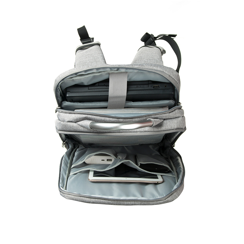The front panel includes a hidden zippered pocket that offers compact and secure storage, effectively reducing the risk of theft while keeping everyday essentials within easy reach. The first main compartment is designed for organized professionals: a large zippered mesh pocket is positioned at the back, while the front section features multifunctional organizers for pens, wallets, tablets, and other daily work accessories. This structured interior layout ensures that your belongings remain neat and accessible, reinforcing its role as a high-performance work backpack.